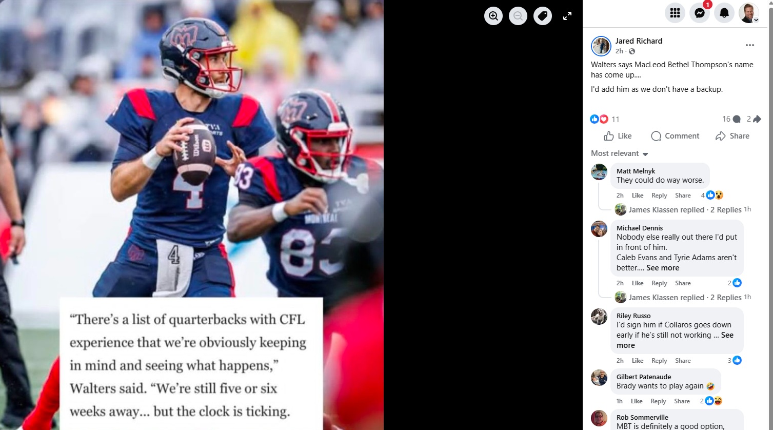 Well, now it appears that the Bombers are at least looking at MacLeod Bethel Thompson.